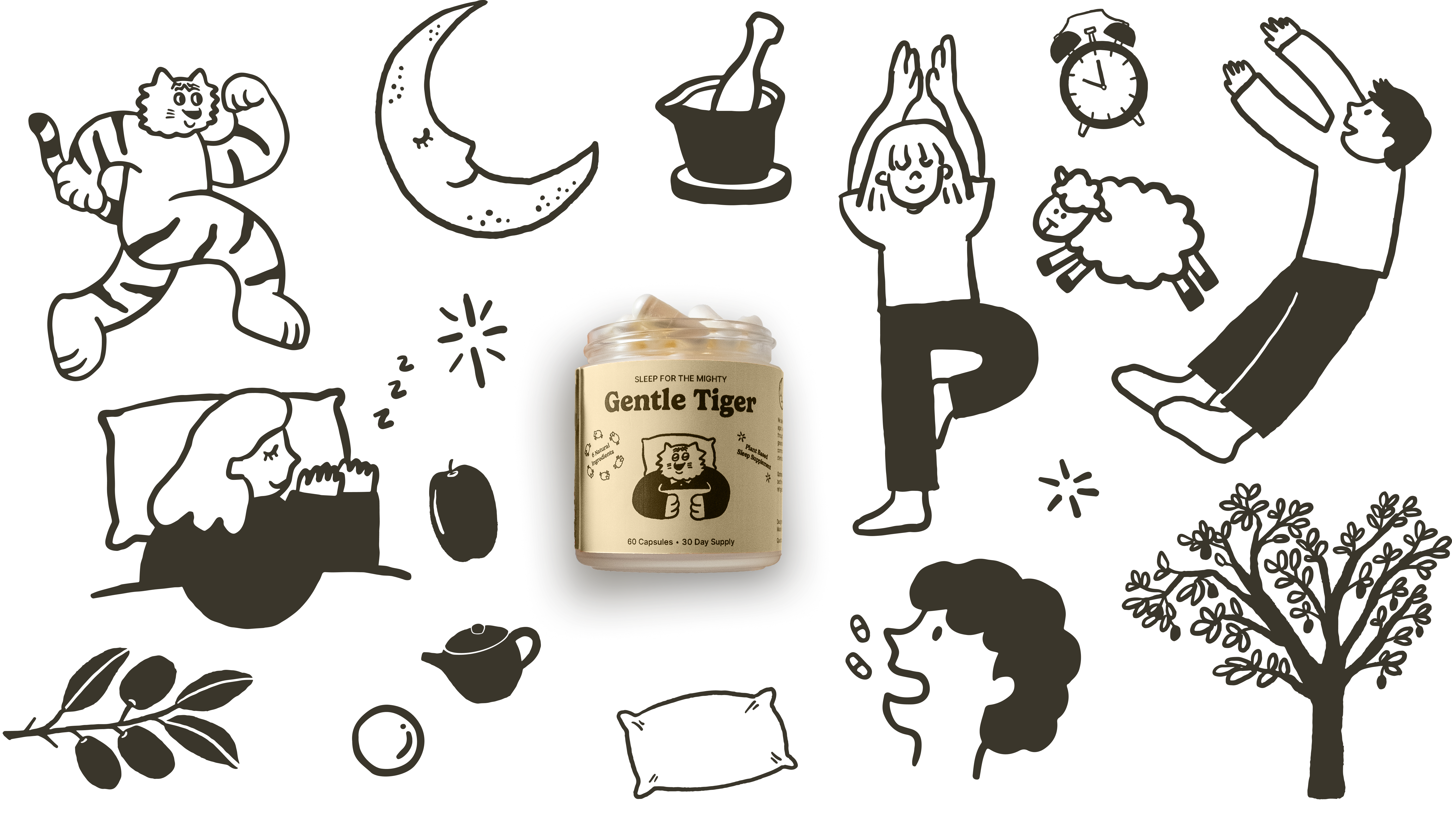 Gentle Tiger is a sleep supplement made from 6 herbal ingredients to help you quickly fall asleep naturally, stay asleep, and wake up feeling restored